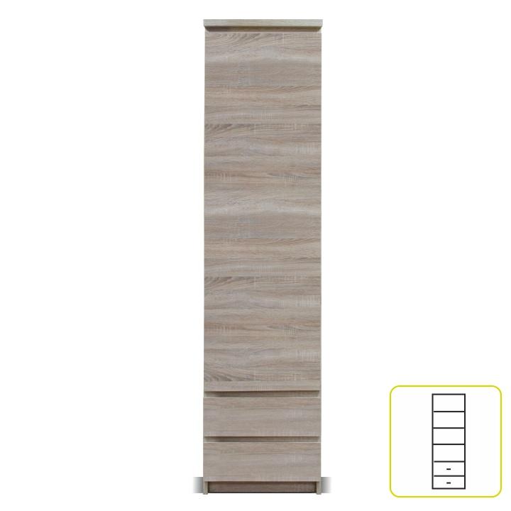 Skříň jednoverová, dvouzásuvková, TYP 02. Materiál: DTD laminovaná, ABS hrany. Barevné provedení: dub sonoma. Rozměry ŠxHxV: 50x41x200 cm. Tloušťka materiálu korpus: 16 mm Tloušťka materiálu vrchní desky: 25 mm Dodávané v demontu.