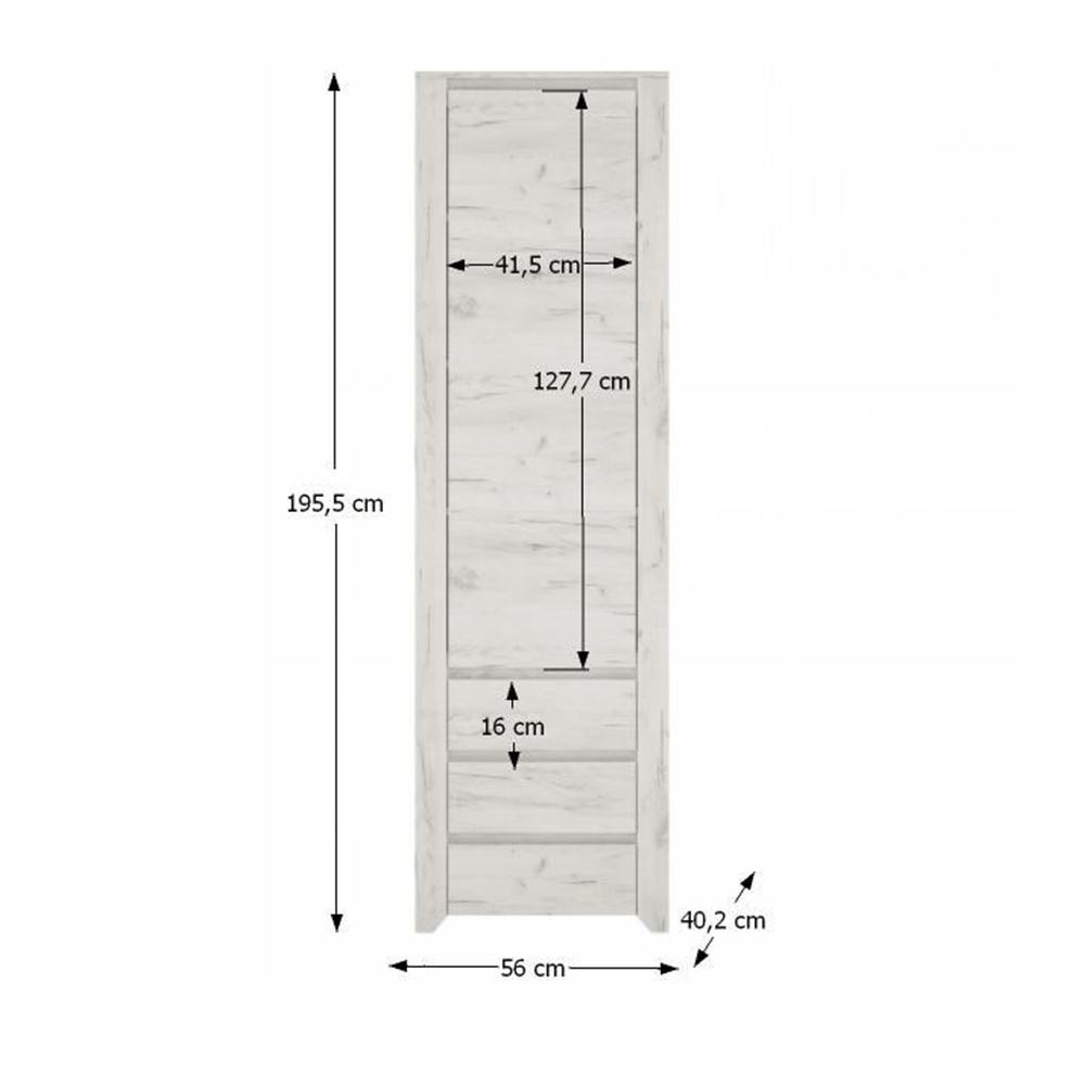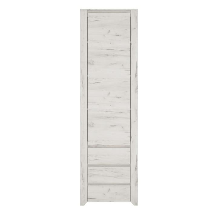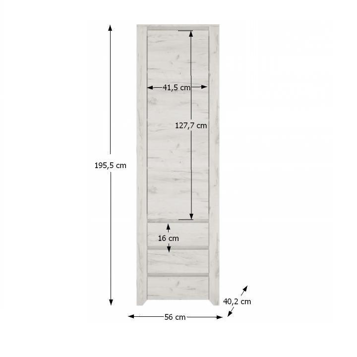 Jednodveřová skříň TYP 10 ze sektorové sestavy ANGEL, skříňka a tři šuplíky Materiál: laminovaná DTD Barva: bílá craft Rozměry (ŠxHxV): 56x40,2x190,5 cm Tloušťka materiálu: 16 mm Výška spodního prostoru od podlahy: 2,5 cm Dodávané v demontu