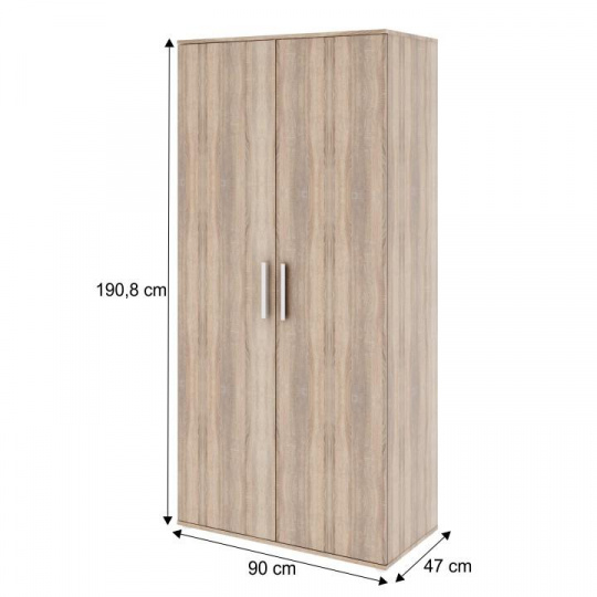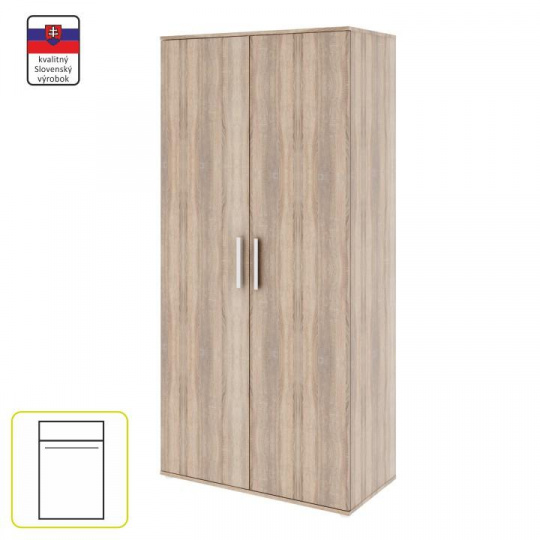Vešiaková skriňa DUNAJ TYP 1 Materiál: DTD laminovaná Prevedenie: dub sonoma Rozmery (ŠxHxV): 90x47x190,8 cm Tloušťka materiálu: 16 mm Kovové úchytky Kvalitný slovenský výrobok Dodávané v demonte.