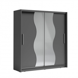 Skriňa so zrkadlom, s posúvacími dverami BIRGAMO TYP 1 Materiál: DTD laminovaná/zrkadlo Farba: tmavosivá grafit Rozmery (ŠxHxV): 205x63x215 cm Dodávané v demonte.