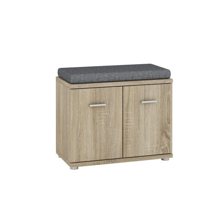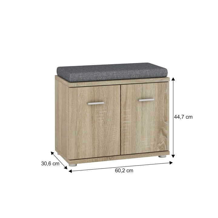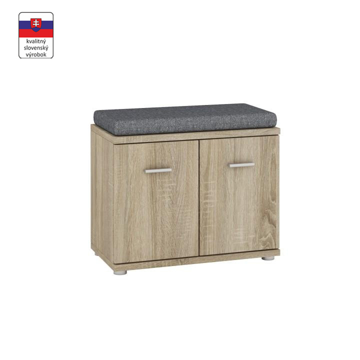 Skříňka / bez podušky, Mario New Typ F, komponent z předsíňové sestavy, Materiál DTD laminovaná, Barevné provedení: dub sonoma. Rozměry (ŠxHxV): 60,2x30,6x44,7 cm. Tloušťka materiálu: 16/22 mm Dvířka mají hladké zakončení.