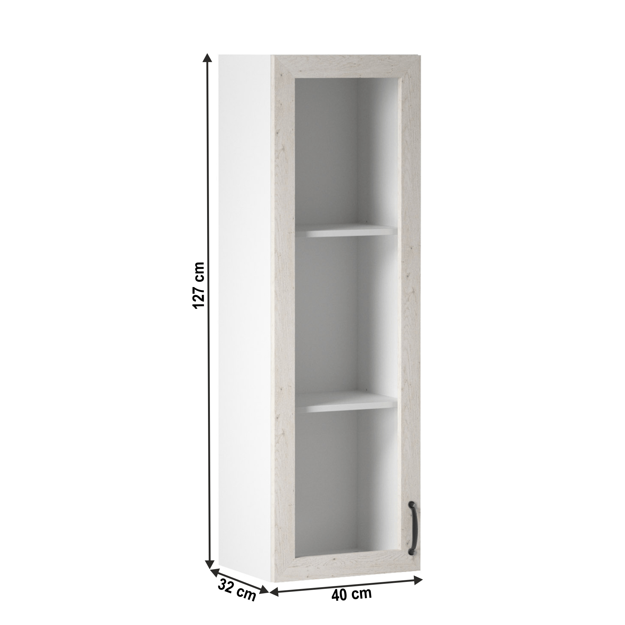 Horní skříňka se sklem, bílá / sosna skandinávská, levá, ROYAL G40S