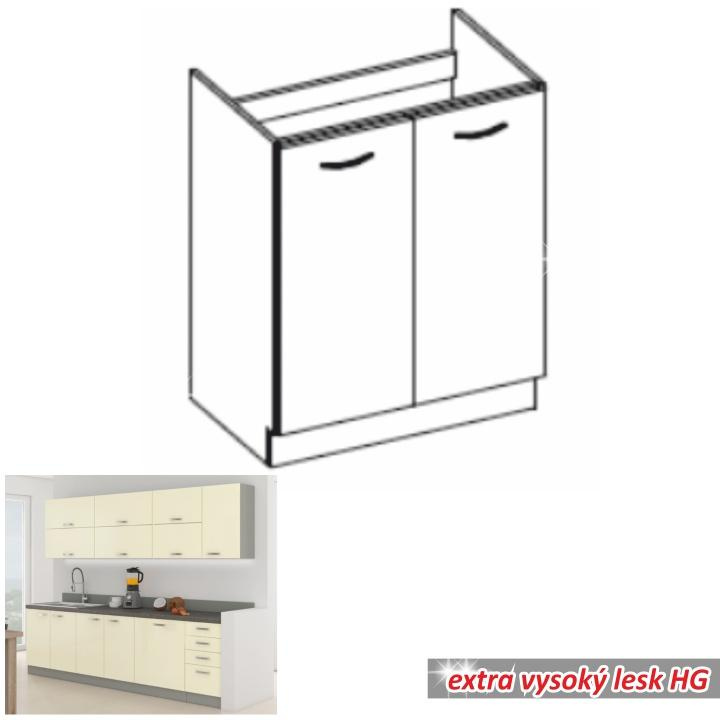Skříňka dolní dřezová, krém vysoký lesk, PRADO 80 ZL 2F BB