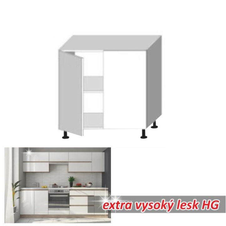 Dolní skříňka D 80, vysoký bílý lesk/dub sonoma, LINE