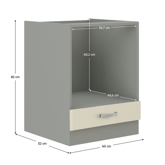 Dolní skříňka PRADO 60 DG BB Materiál: /kov Barva: krémová/šedá Rozměry (ŠxHxV): 60x82x52 cm HVnitřní rozměr (ŠxHxV): 56,7x45,6x60,2 cm Dvířka - extra vysoký lesk high gloss Korpus šedé barvy Systém tichého dorazu zásuvek Systém tichého zavírání dvířek Kovové úchyty Úložný prostor Je určena k zakomponování sporáku do kuchyňské linky Dodáváno v demontu Sektorové skříňky jsou dodávány bez pracovní desky včetně spodní lišty. Možnost dokoupit PD metalic brown v ceně 1.690 Kč/1m. K našim kuchyňským skříňkám si můžete objednat i dřezy, baterie a příslušenství.