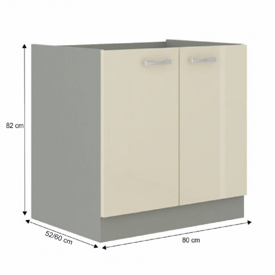 Skříňka dolní, krémová extra vysoký lesk/šedá, PRADO 80 D 2F BB
