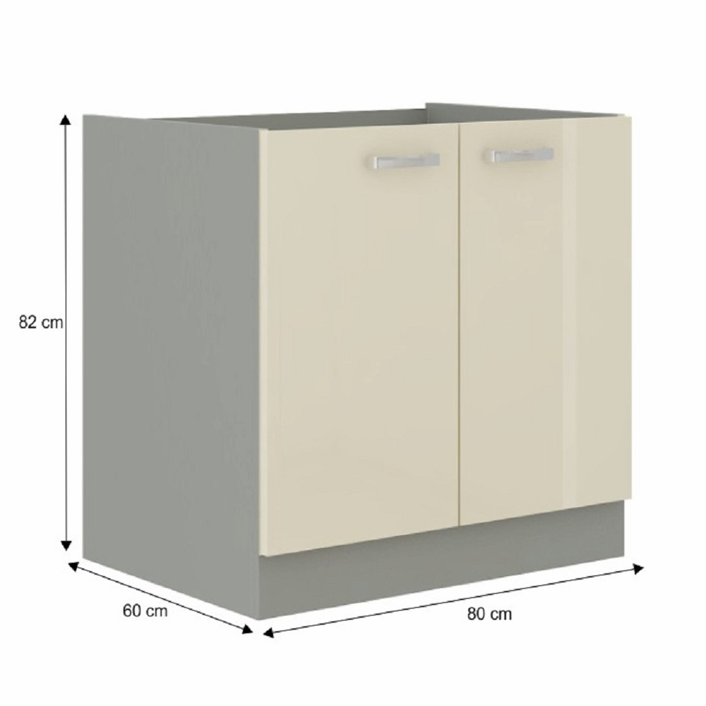 Skříňka dolní, krémová extra vysoký lesk/šedá, PRADO 80 D 2F BB