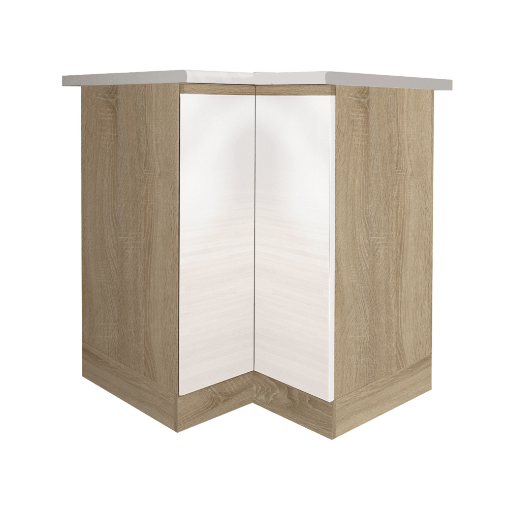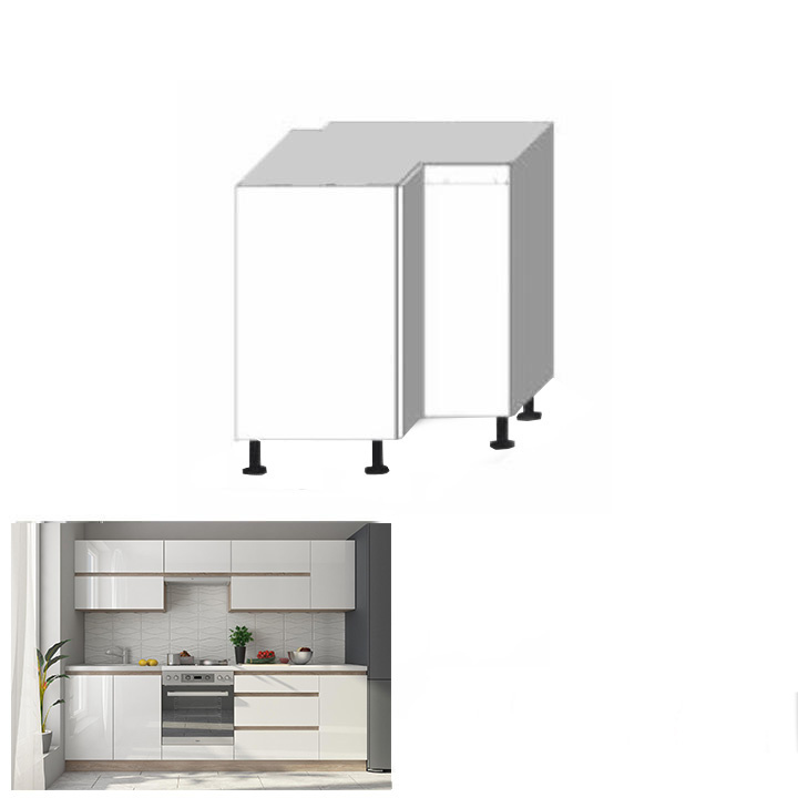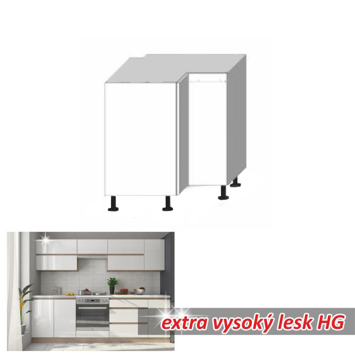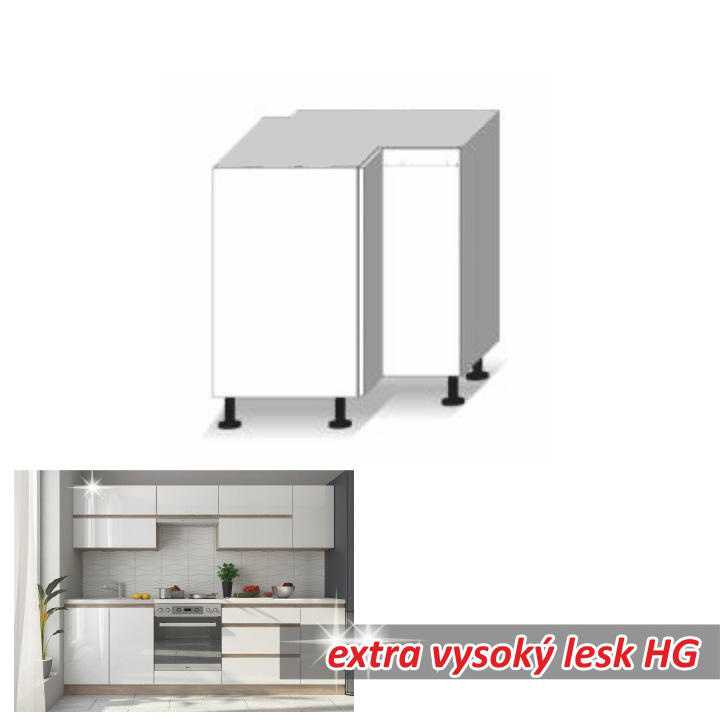 Dolní rohová skříňka DR L LINE Materiál: DTD laminovaná Provedení: vysoký bílý lesk / dub sonoma Rozměry (ŠxHxV): 72,5x72,5x82 cm S dvířky Systém tichého zavírání dvířek Dodávaná s pracovní deskou a dolní lištou úložný prostor moderní design Dodávané v demontu. Možnost dokoupit dřez LAY ON. Možnost dokoupit pracovní desku 38 mm v ceně 1.650 Kč / bm.
