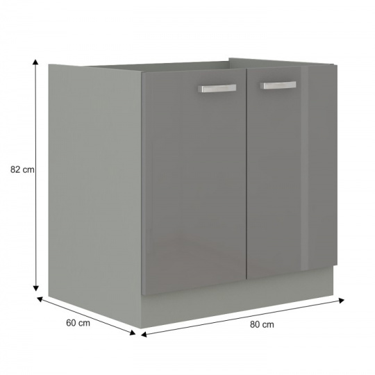 Skříňka dolní, šedá extra vysoký lesk/šedá, PRADO 80 D 2F BB