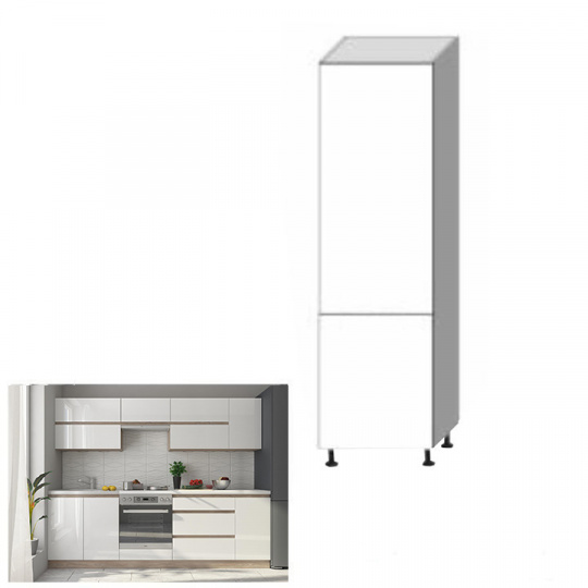 Potravinová skříňka D 60 LINE Materiál: DTD laminovaná Provedení: vysoký bílý lesk / dub sonoma Rozměry (ŠxHxV): 60x54,5x202 cm S dvířky Systém tichého zavírání dvířek Dodávaná s dolní lištou. Pravé provedení úložný prostor moderní design Dodávané v demontu. Možnost dokoupit dřez LAY ON. Možnost dokoupit pracovní desku 38 mm v ceně 1.650 Kč / bm.