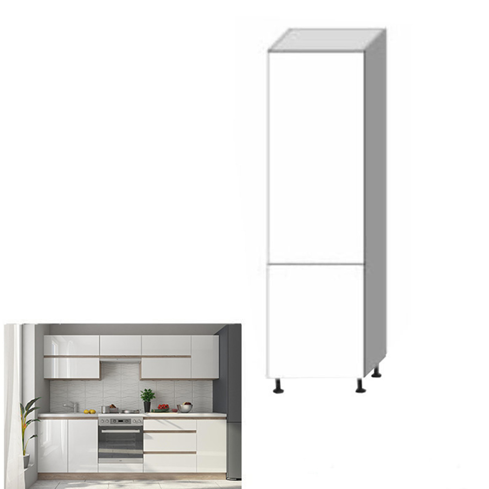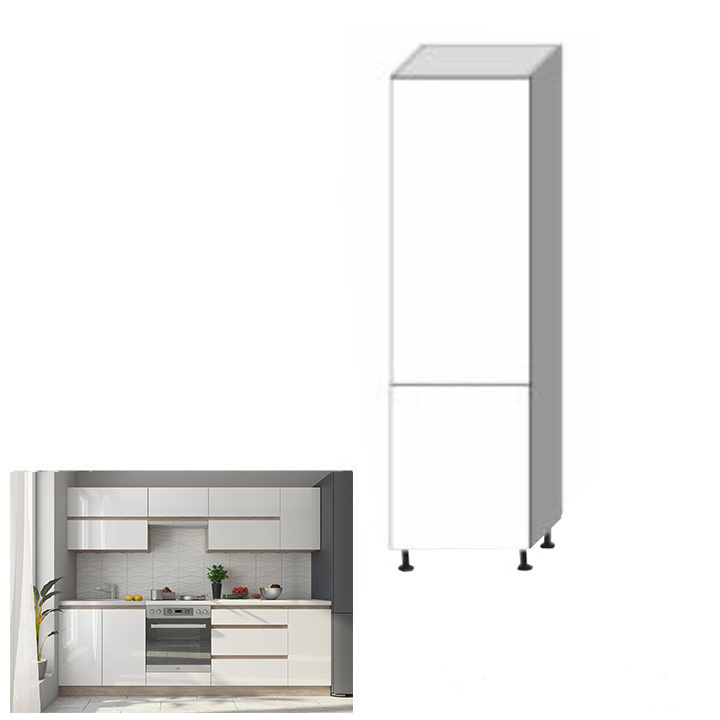 Potravinová skříňka D 60 LINE Materiál: DTD laminovaná Provedení: vysoký bílý lesk / dub sonoma Rozměry (ŠxHxV): 60x54,5x202 cm S dvířky Systém tichého zavírání dvířek Dodávaná s dolní lištou. Pravé provedení úložný prostor moderní design Dodávané v demontu. Možnost dokoupit dřez LAY ON. Možnost dokoupit pracovní desku 38 mm v ceně 1.690 Kč / bm.