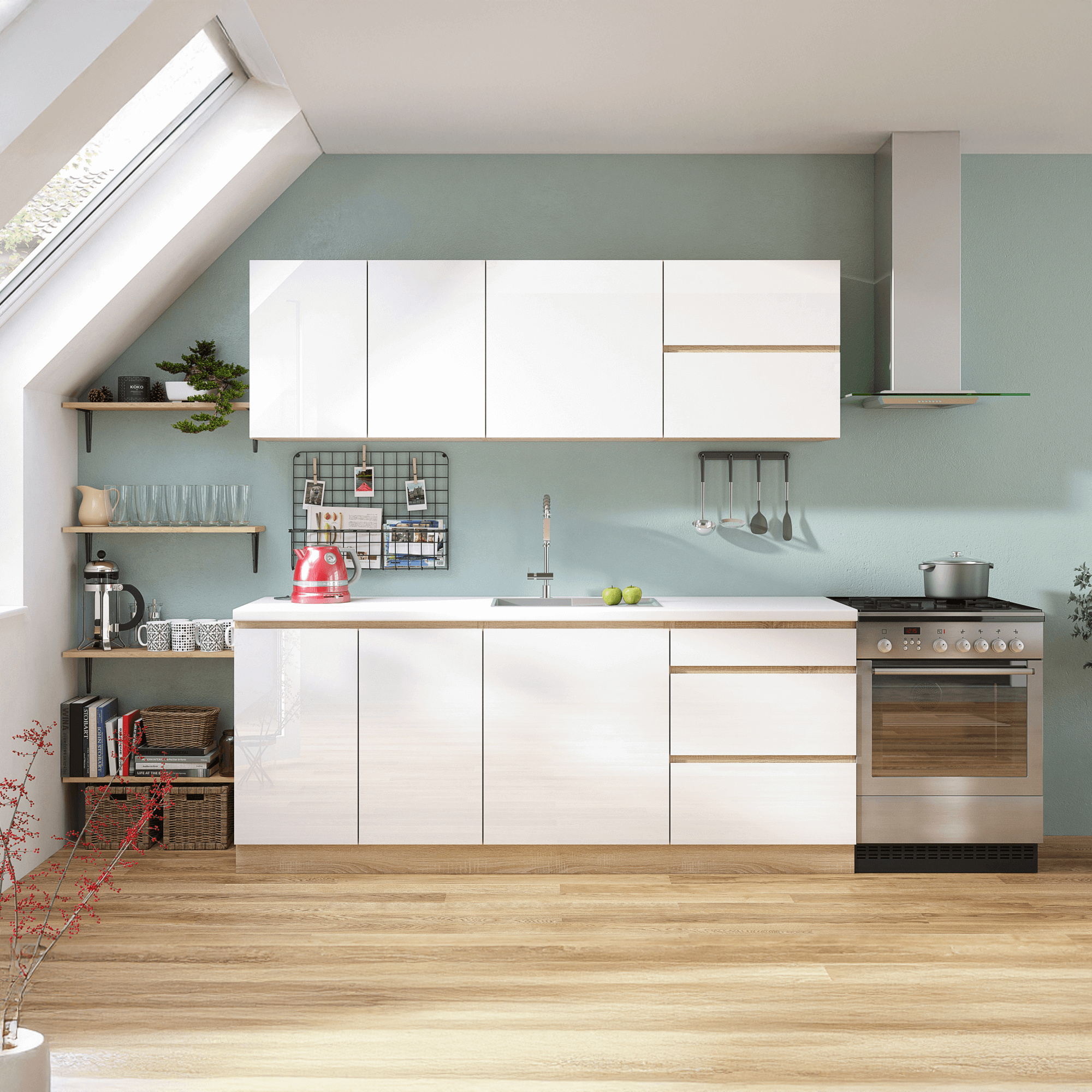Potravinová skříňka D 60, vysoký bílý lesk/dub sonoma, pravá, LINE