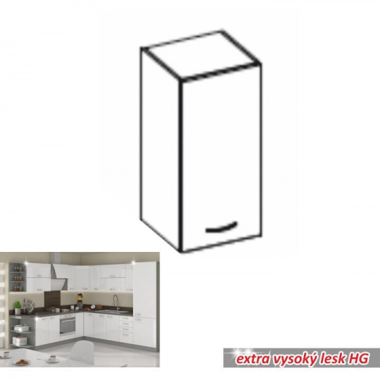 Skříňka horní, bílá vysoký lesk, PRADO 40G-72 1F