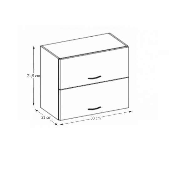 Horní skříňka 80 GU 72 Materiál: laminovaná DTD/ kov Provedení: bílá extra vysoký lesk / šedá Rozměry (ŠxHxV): 80x31x71,5 cm Korpus šedé barvy kovové úchytky Dvířka extra vysoký lesk HG Systém tichého zavírání dvířek Systém tichého dorazu zásuvek Dodávané v demontu tloušťka pracovní desky 28 mm, horní i dolní rozměr 2,6 m, dolní skříňky ZZ jsou dodávány včetně pracovní desky a dolní lišty, dřezová skříňka bez pracovní desky. Sektorové skrinky sú dodávané bez pracovnej dosky vrátane spodnej lišty.Možnosť dokúpiť PD metalic brown v cene 1.650 Kč/1m. Možnosť dokúpiť univerzálny Ľ/P drez LAY ON.