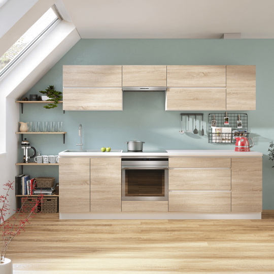 Horní skříňka G 40 LINE Materiál: DTD laminovaná Provedení: dub sonoma / bílá Rozměry (ŠxHxV): 40x32x60 cm pravé provedení Tiché zavírání dvířek Pravé provedení úložný prostor moderní design Dodávané v demontu. Možnost dokoupit dřez LAY ON. Možnost dokoupit pracovní desku 38 mm v ceně 1.650 Kč / bm.