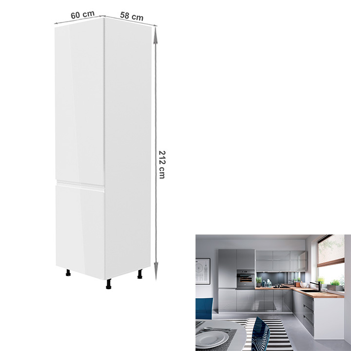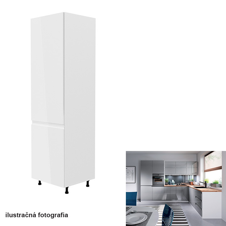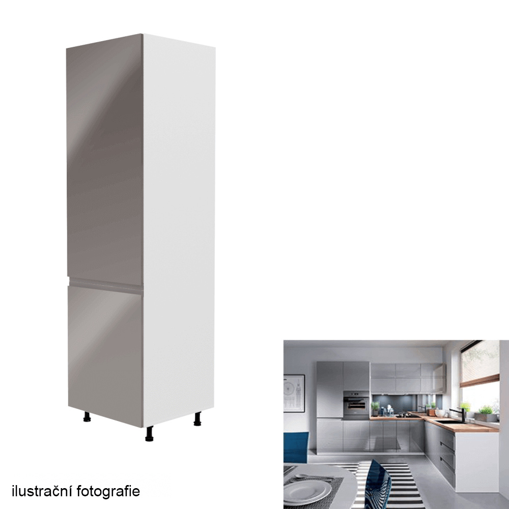 Skříňka na lednici, bílá / šedá extra vysoký lesk, levá, AURORA D60ZL