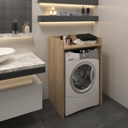 Materiál: laminovaná DTD Barva: dub artisan Rozměry (ŠxHxV): 64x50x97,5 cm Prostor pro pračku (ŠxV): 60,8x86,4 cm Tloušťka materiálu: 1,6 cm Nosnost vrchní desky: 10 kg Postavena na kluzácích Doporučujeme připevnit ke zdi Kvalitní slovenský výrobek Dodáváno v demontu