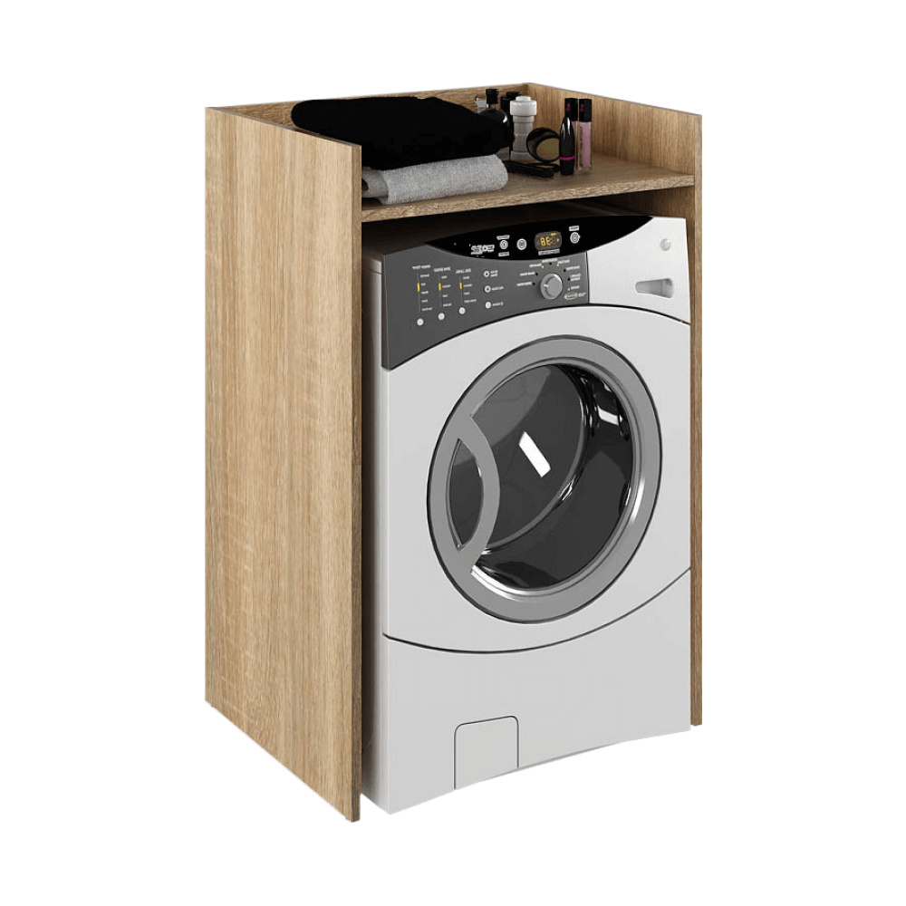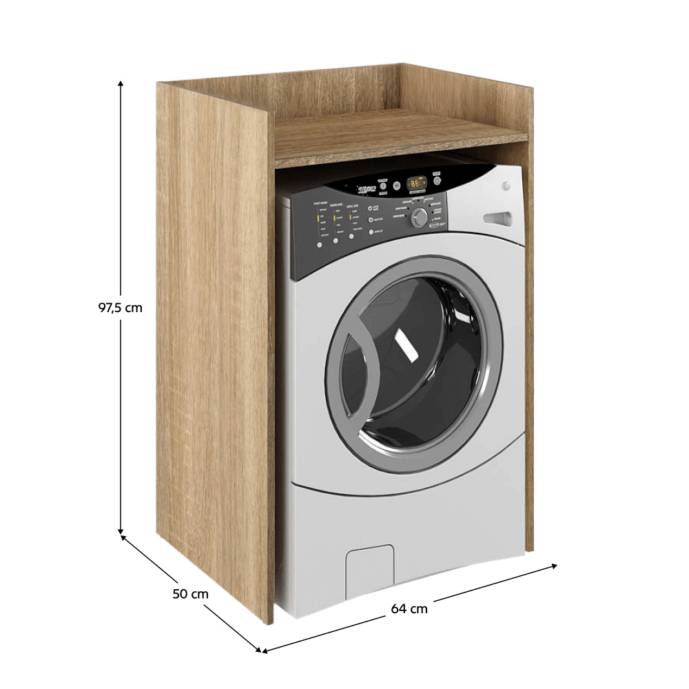 Materiál: laminovaná DTD Barva: dub sonoma Rozměry (ŠxHxV): 64x50x97,5 cm Prostor pro pračku (ŠxV): 60,8x86,4 cm Tloušťka materiálu: 1,6 cm Nosnost vrchní desky: 10 kg Postavena na kluzácích Doporučujeme připevnit ke zdi Kvalitní slovenský výrobek Dodáváno v demontu