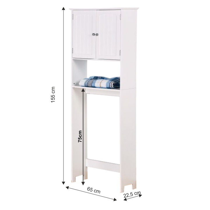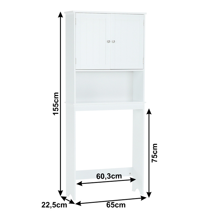 ATENE TYP 5 skříňka nad WC Barevné provedení bílá, Materiál: lakovaná MDF Rozměry (ŠxHxV): 65x22,5x155 cm Výška od podlahy po polici: 75 cm Tloušťka materiálu: 12 mm Dodávané v demontu.