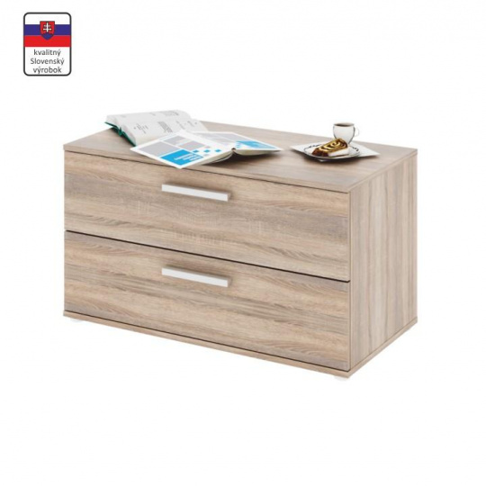 Komoda, DUNAJ TYP 8 Materiál: DTD laminovaná Provedení: dub sonoma Rozměry (ŠxHxV): 90x47x50,8 cm Tloušťka materiálu: 16 mm Kvalitní slovenský výrobek Dodávané v demontu.