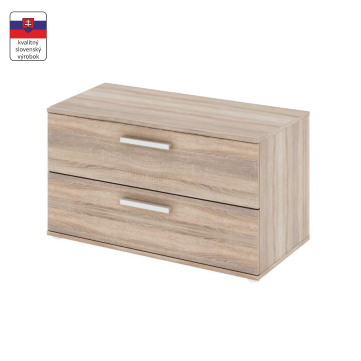 Komoda, DUNAJ TYP 8 Materiál: DTD laminovaná Provedení: dub sonoma Rozměry (ŠxHxV): 90x47x50,8 cm Tloušťka materiálu: 16 mm Kvalitní slovenský výrobek Dodávané v demontu.