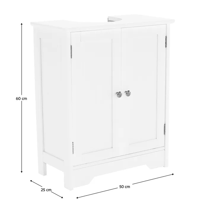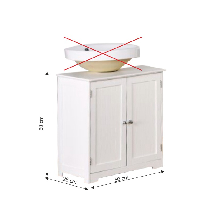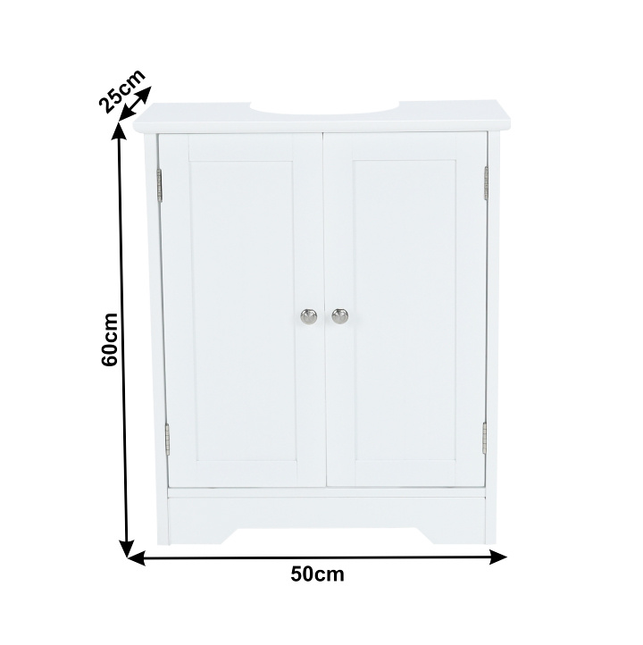 ATENE TYP 3 skříňka pod umyvadlo, Barevné provedení bílá, Materiál: lakovaná MDF Rozměry (ŠxHxV): 50x25x60 cm Rozměry otvoru na umyvadlo: 21x17 cm Rozměry první policie (ŠxH): 44x20,5 cm Rozmery druči policie (ŠxH): 44x23 cm Rozměry otvoru sifonu: 6x6 cm Tloušťka materiálu vrchní část: 15 mm Tloušťka materiálu korpus: 12 mm Dodávané v demontu.