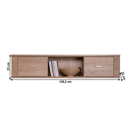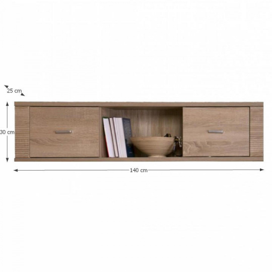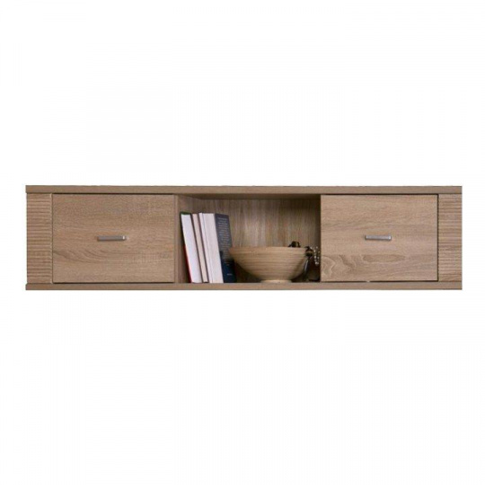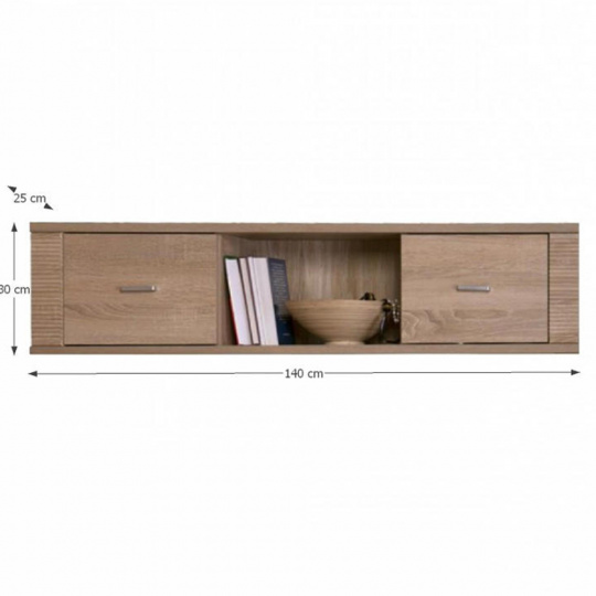 Závěsná skříňka typ 15 Materiál: DTD laminovaná. Barevné provedení: dub sonoma. Rozměry (ŠxHxV): 139,2x25x33 cm Tloušťka materiálu korpus: 16 mm Tloušťka materiálu vrchní desky: 22 mm Tloušťka materiálu spodní desky: 22 mm Dvoudveřová skříňka. Dodáván v demontu.