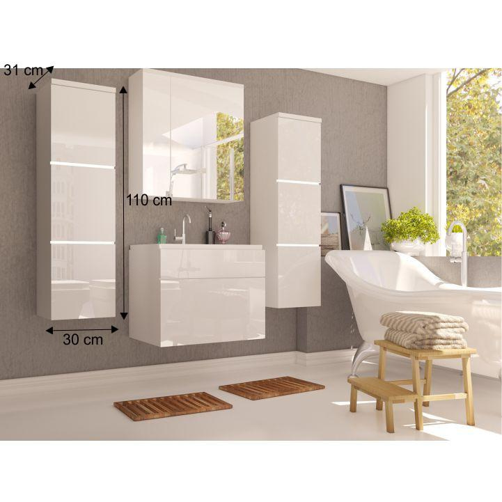 Skříňka vysoká WH11 MASON Materiál: DTD laminovaná Provedení: bílá / bílý extra vysoký lesk HG Rozměry (ŠxHxV): 30x31x110 cm Dotykový systém PUSH UP policová Možnost objednání LED osvětlení v ceně 690,- Kč Dodávána v demontu