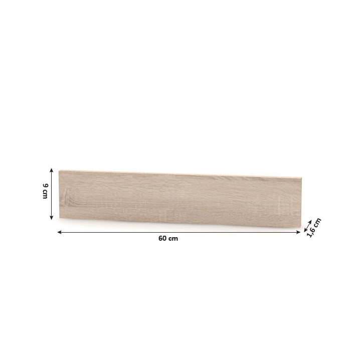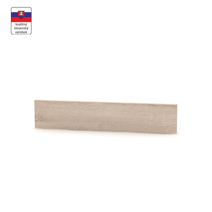 Sokl na myčku NOPL-062-02 Materiál: DTD laminovaná Barva: dub sonoma Rozměry (ŠxHxV): 60x1,6x9 cm Tloušťka materiálu: 16 mm Kvalitní slovenský výrobek. Dodávané v demontu. Cena za pracovní desku je 1.590, - Kč za bm - tloušťka 38 mm. Horní rozměr kuchyňské sestavy je 2,4 m, spodní rozměr je 1,8 m. Tloušťka materiálu: 16 mm Základní kuchyňská sestava a všechny spodní skříňky jsou dodávány bez pracovní desky, včetně dolní lišty. Možnost dokoupit univerzální L / P dřez LAY ON.