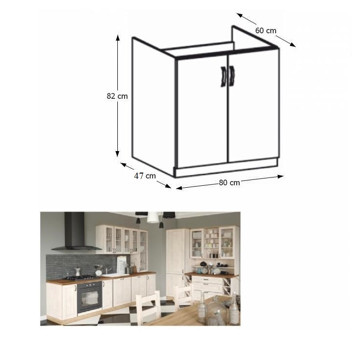 Spodní drezová skříňka, ROYAL D80Z Materiál: korpus je vyroben z kvalitní laminované dřevotřísky Barva: bílá/sosna skandinávska Rozměry ŠxHxV: 80x47x82 cm Tloušťka materiálu: 15 mm Systém tichého zavírání dvířek Dodávané v demontu. Spodní skříňky ke kuchyni ROYAL jsou dodávány bez pracovní desky a bez soklu. Pracovní desku Dub Porterhouse tmavý lze doobjednat v tloušťce 3,8 cm v ceně 1690 Kč/1 bm. Ke každé dolní skříňce, kromě rohových skříněk D25PZ, je třeba doobjednat i sokel v provedení dub divoký v ceně 270 Kč/1 bm a 2 kusy úchytů na sokl v ceně 30 Kč/2 ks. Ke spodním skříňkám máte možnost dokoupit také ukončení na sokl o hloubce 47 cm a 56 cm za 210 Kč. Objednávku vepište do poznámky v objednávkovém formuláři.