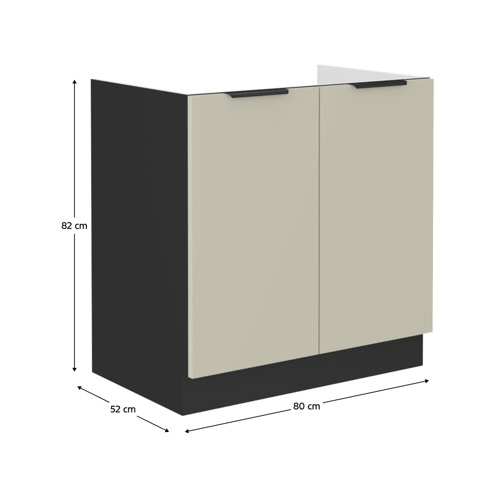 Spodní dřezová skříňka, kašmír/černá, ARAKA 80 ZL 2F BB