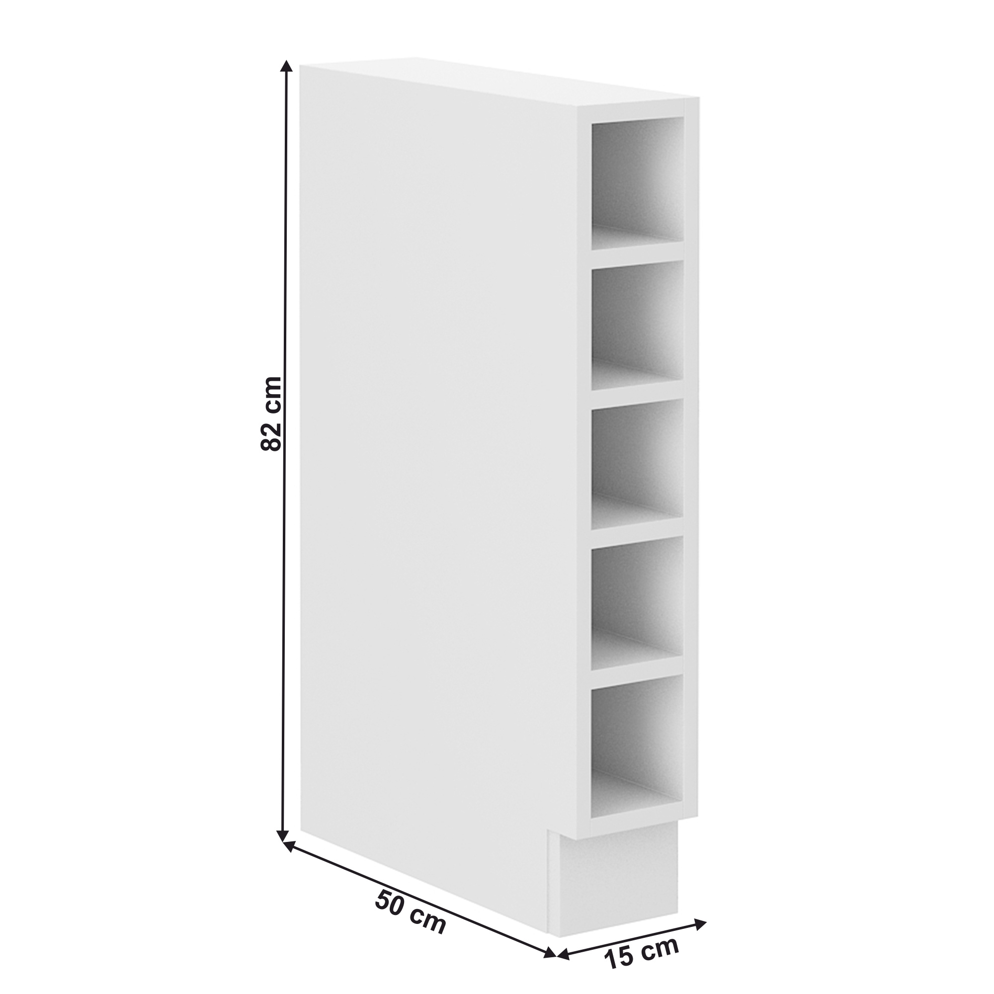 Spodní policová skříňka LULA15 D OTW BB Materiál: DTD laminovaná Barva: bílá Rozměry (ŠxHxV): 15x50x82 cm Tloušťka korpusu: 1,6 cm S dolní lištou/soklem S policemi Moderní dynamický design Je třeba zakoupit pracovní desku a položit na skříňku Dodáváno v demontu Možnost dokoupit univerzální dřez LAY ON Spodní skříňky jsou dodávány včetně dolní lišty, bez pracovní desky. Možnost dokoupení pracovní desky dub artisan v ceně 1.890 Kč/bm.nebo marmur roma v ceně 1.790 Kč/bm. Možnost dokoupit univerzální dřez LAY ON.