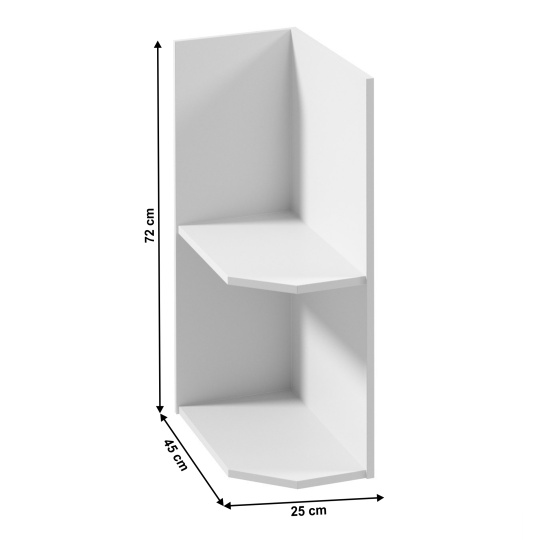 Spodní rohová skříňka se dvěma policemi, ROYAL D25PZ, levá Materiál: korpus je vyroben z kvalitní laminované dřevotřísky Barva: bílá Rozměry ŠxHxV: 25x45 / 60x72 cm Tloušťka materiálu: 15 mm Dodávané v demontu. Spodní skříňky ke kuchyni ROYAL jsou dodávány bez pracovní desky a bez soklu. Pracovní desku Dub Porterhouse tmavý lze doobjednat v tloušťce 3,8 cm v ceně 1690 Kč/1 bm. Ke každé dolní skříňce, kromě rohových skříněk D25PZ, je třeba doobjednat i sokel v provedení dub divoký v ceně 280 Kč/1 bm a 2 kusy úchytů na sokl v ceně 30 Kč/2 ks. Ke spodním skříňkám máte možnost dokoupit také ukončení na sokl o hloubce 47 cm a 56 cm za 140 Kč. Objednávku vepište do poznámky v objednávkovém formuláři.