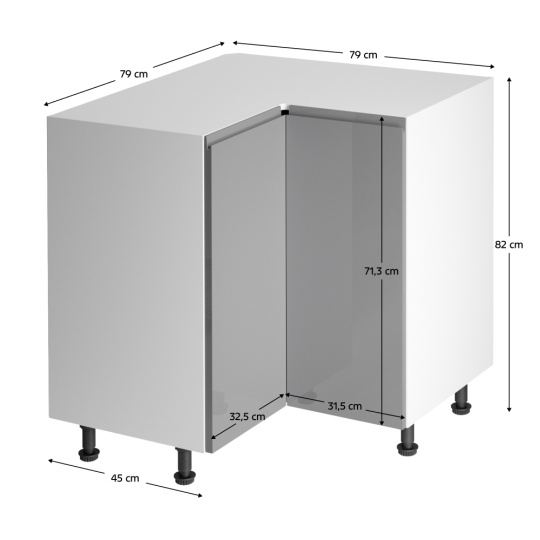 Spodní rohová skříňka, Aurora D90N Provedení: DTD laminové / MDF Barva: bílá / šedá extra vysoký lesk Rozměry (ŠxHxV): 79 / 90x79 / 90x82 cm Tloušťka materiálu: 15 mm Pracovní deska není součástí skříněk. Je možné si doobjednat pracovní desku v provedení dub artisan o tloušťce 38 mm za 1.690 Kč/bm. Možnost dokoupit dřez, dřezovou baterii a příslušenství. Ke spodním skříňkám máte možnost dokoupit spodní lištu/sokl v bílé barvě o rozměru 1 bm za 280 Kč nebo 2 bm za 560 Kč a ukončení na sokl o hloubce 47 cm nebo 58 cm za 210 Kč. Ke každé dolní skříňce, kromě D25PZ, je třeba doobjednat 2 ks úchytek na sokl - cena 40 Kč/2ks.
