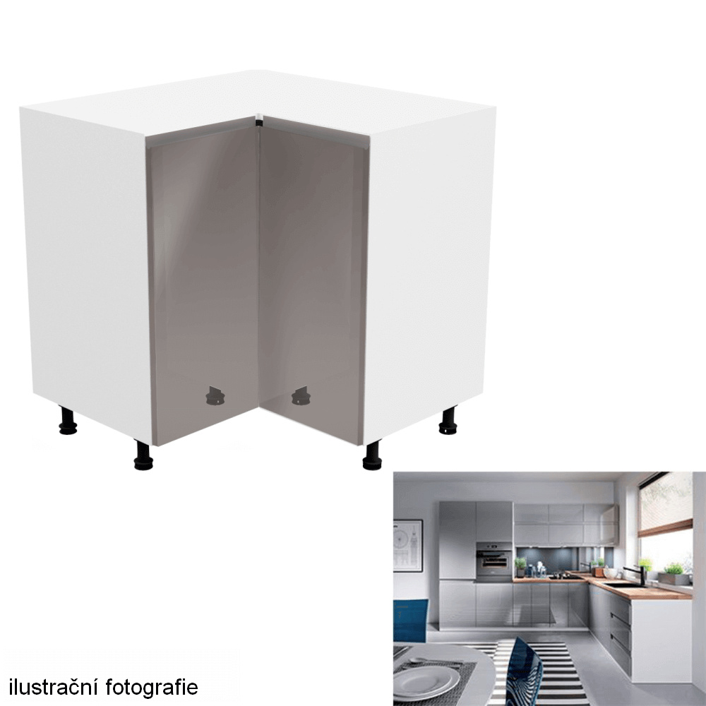 Spodní rohová skříňka, bílá / šedá extra vysoký lesk, AURORA D90N