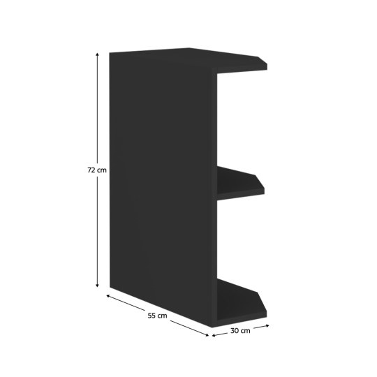 Materiál: laminovaná DTD Barva: černý mat Rozměry (ŠxHxV): 30x55x72 cm Tloušťka materiálu: 1,6 cm S policí Otevřená Rohová Bez dolní lišty/soklu Bez pracovní desky Moderní design Možnost dokoupit univerzální dřez LAY ON. Dodáváno v demontu Spodní sektorové skříňky jsou dodávány včetně dolní lišty (sokla), bez pracovní desky. Pracovní desku o tloušťce 3,8 cm si můžete doobjednat v provedení marmur roma za cenu 1.650 Kč/bm.
