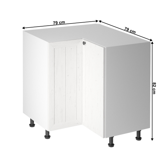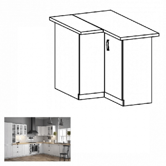Spodní rohová skříňka ke kuchyni PROVANCE Provedení: DTD laminovaná / MDF Barva: bílá / sosna andersen Rozměry (ŠxHxV): 79/90x79/90x82 cm Tloušťka materiálu: 15 mm Pravé provedení Spodní skříňky jsou dodávány bez pracovní desky. Pracovní deska v tloušťce 3 cm. Ke spodním skříňkám je třeba doobjednat sokl. Ke každé spodní skříňce, kromě dřezové D25PZ, je třeba doobjednat ještě 2 kusy úchytů na sokl. Cena za pracovní desku dub lancelot je 1.690, - Kč za bm- tloušťka je 38 mm, cena za spodní lištu je 390, - Kč za bm. Cena ukončení na sokl s hloubkou 47 cm nebo 58 cm je 140 Kč. Ke každé dolní skříňce, kromě D25PZ, je třeba doobjednat 2 ks úchytek na sokl - cena 30, - Kč / 2Ks.