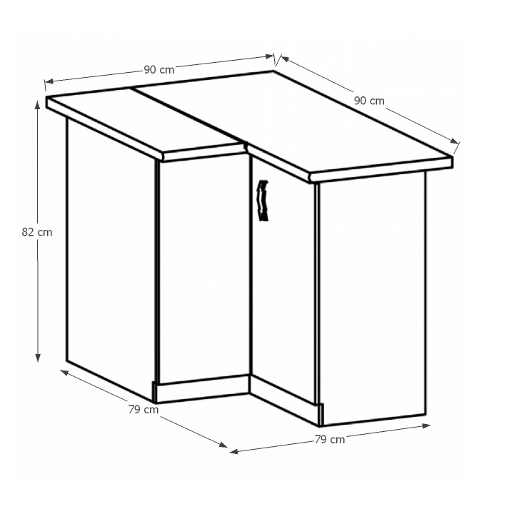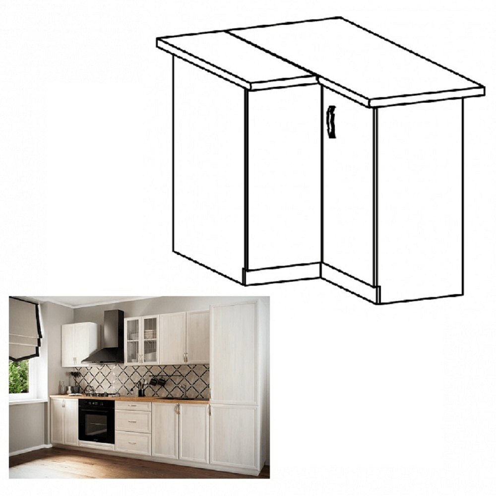 Spodní rohová skříňka D90N ke kuchyni SICILIA Provedení: DTD laminovaná/MDF lišty Barva: bíla/sosna Andersen Rozměry (ŠxHxV): 79/90x79/90x82 cm Tloušťka materiálu: 15 mm Pravé provedení Spodní skříňky jsou dodávány bez pracovní desky. Můžete si objednat pracovní desku royal beigemarble k provedení ořech Milano - tloušťka 28mm za 1.790 Kč/bm a nebo pracovní desku dub Lancelot k provedení sosna andersen - tloušťka 38 mm za 1.890 Kč/bm.