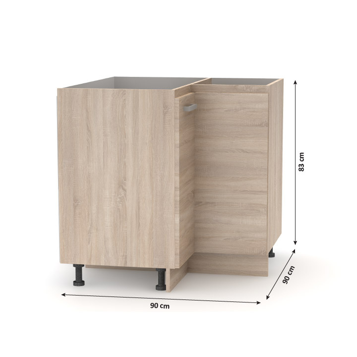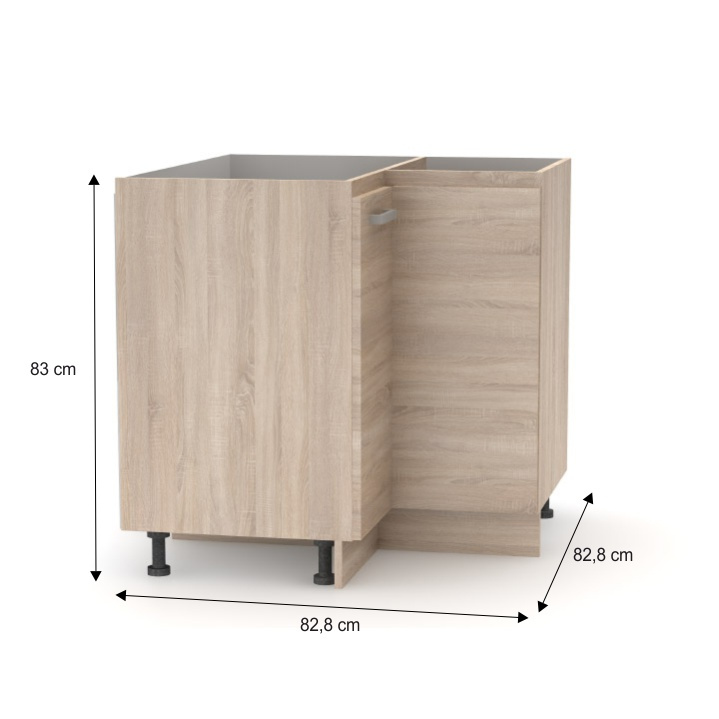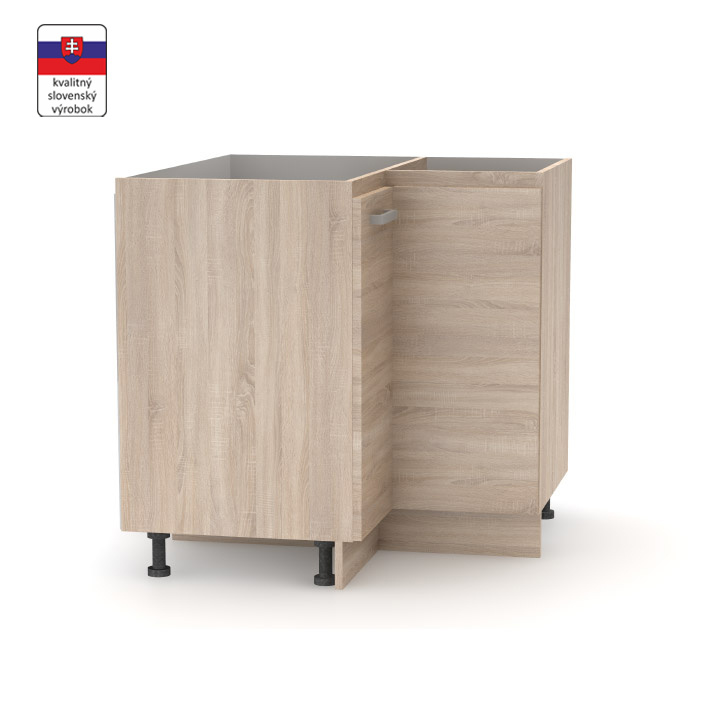 Spodní skříňka rohová NOPL-061-RS Materiál: DTD laminovaná Barva: dub sonoma Rozměry (ŠxHxV): 82,8x82,8x83 cm Tloušťka materiálu: 16 mm Univerzální Kvalitní slovenský výrobek. Dodávané v demontu. Cena za pracovní desku je 1.590, - Kč za bm - tloušťka 38 mm. Horní rozměr kuchyňské sestavy je 2,4 m, spodní rozměr je 1,8 m. Tloušťka materiálu: 16 mm Základní kuchyňská sestava a všechny spodní skříňky jsou dodávány bez pracovní desky, včetně dolní lišty. Možnost dokoupit univerzální L / P dřez LAY ON.