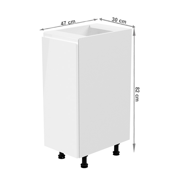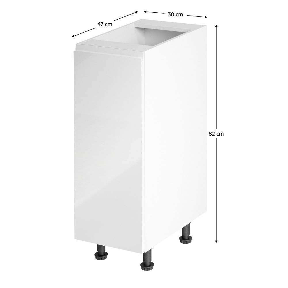Spodní skříňka, Aurora D30 Provedení: DTD laminové / MDF Barva: bílá / bílá extra vysoký lesk Rozměry (ŠxHxV): 30x47x82 cm Tloušťka materiálu: 15 mm Systém tichého zavírání dvířek Pracovní deska není součástí skříněk. Je možné si doobjednat pracovní desku v provedení dub artisan o tloušťce 38 mm za 1.890 Kč/bm. Možnost dokoupit dřez, dřezovou baterii a příslušenství. Ke spodním skříňkám máte možnost dokoupit spodní lištu/sokl v bílé barvě o rozměru 1 bm za 280 Kč nebo 2 bm za 560 Kč a ukončení na sokl o hloubce 47 cm nebo 58 cm za 210 Kč. Ke každé dolní skříňce, kromě D25PZ, je třeba doobjednat 2 ks úchytek na sokl - cena 40 Kč/2ks.