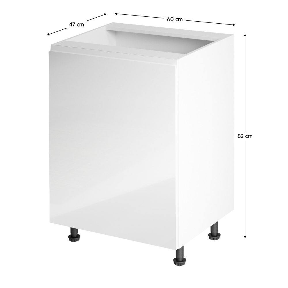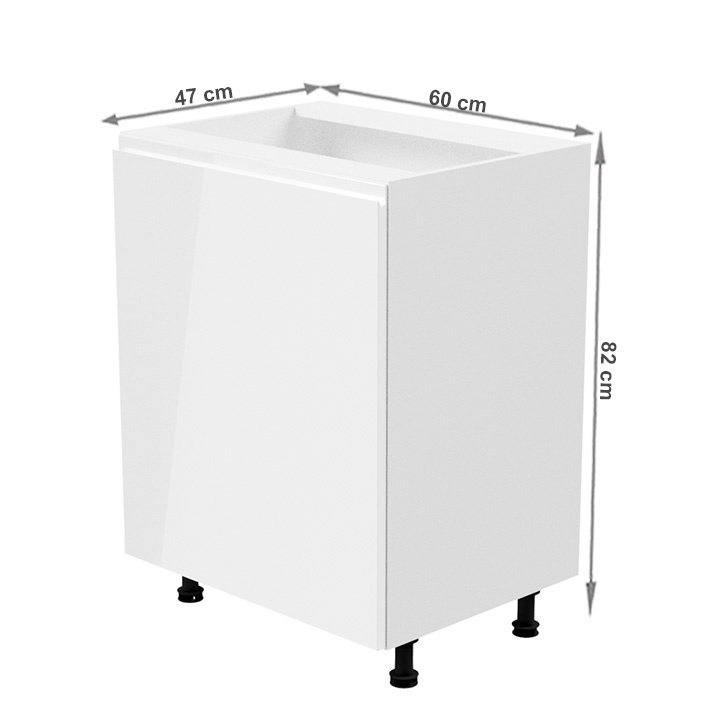 Spodní skříňka, Aurora D601F Provedení: DTD laminové / MDF Barva: bílá / bílá extra vysoký lesk Rozměry (ŠxHxV): 60x47x82 cm Tloušťka materiálu: 15 mm Systém tichého zavírání dvířek Pracovní deska není součástí skříněk. Je možné si doobjednat pracovní desku v provedení dub artisan o tloušťce 38 mm za 1.890 Kč/bm. Možnost dokoupit dřez, dřezovou baterii a příslušenství. Ke spodním skříňkám máte možnost dokoupit spodní lištu/sokl v bílé barvě o rozměru 1 bm za 280 Kč nebo 2 bm za 560 Kč a ukončení na sokl o hloubce 47 cm nebo 58 cm za 210 Kč. Ke každé dolní skříňce, kromě D25PZ, je třeba doobjednat 2 ks úchytek na sokl - cena 40 Kč/2ks.