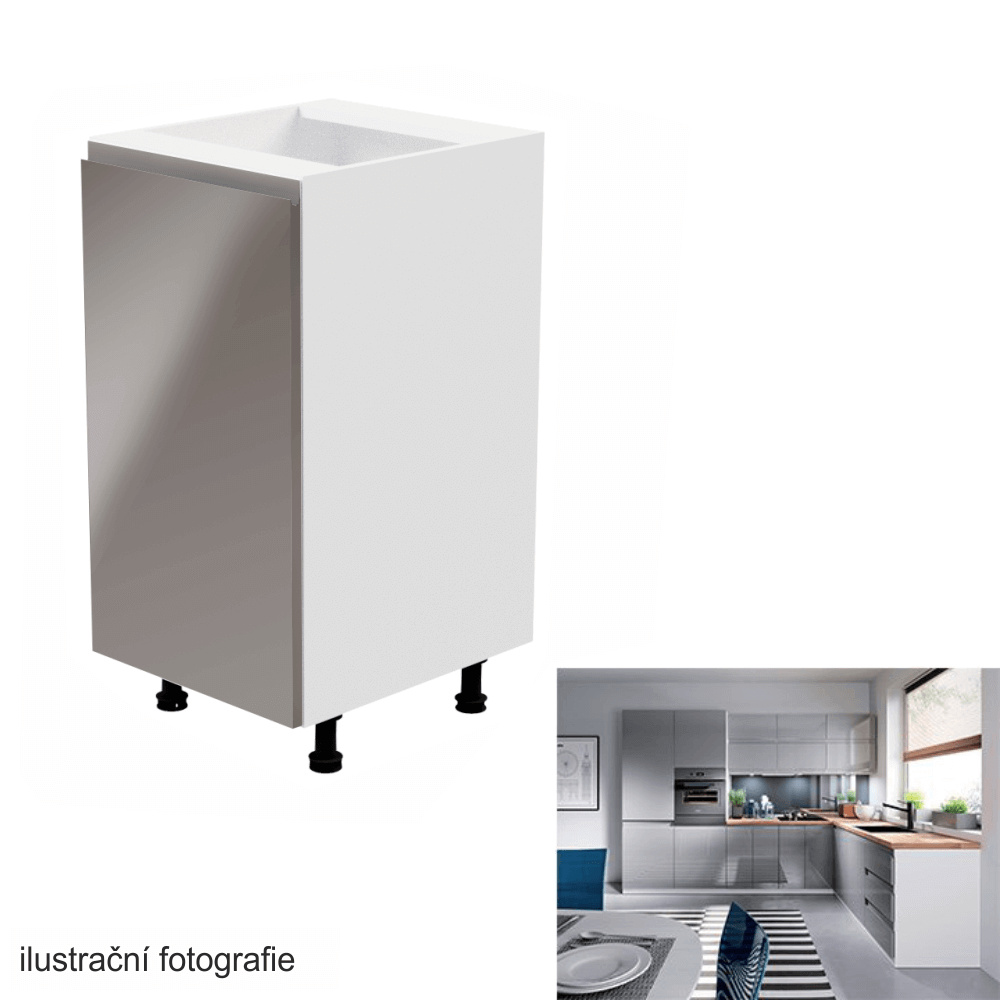 Spodní skříňka, bílá / šedá extra vysoký lesk, levá, AURORA D40