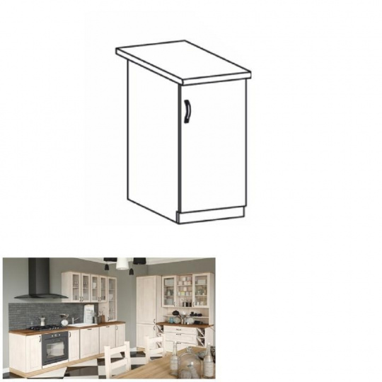 Spodní skříňka s dvířky s policou, pravá, ROYAL D40 Materiál: korpus je vyroben z kvalitní laminované dřevotřísky Barva: bílá/sosna skandinávska Rozměry ŠxHxV: 40x47 / 60x82 cm Tloušťka materiálu: 15 mm Systém tichého zavírání dvířek Dodávané v demontu. Spodní skříňky ke kuchyni ROYAL jsou dodávány bez pracovní desky a bez soklu. Pracovní desku Dub Porterhouse tmavý lze doobjednat v tloušťce 3,8 cm v ceně 1690 Kč/1 bm. Ke každé dolní skříňce, kromě rohových skříněk D25PZ, je třeba doobjednat i sokel v provedení dub divoký v ceně 280 Kč/1 bm a 2 kusy úchytů na sokl v ceně 30 Kč/2 ks. Ke spodním skříňkám máte možnost dokoupit také ukončení na sokl o hloubce 47 cm a 56 cm za 140 Kč. Objednávku vepište do poznámky v objednávkovém formuláři.