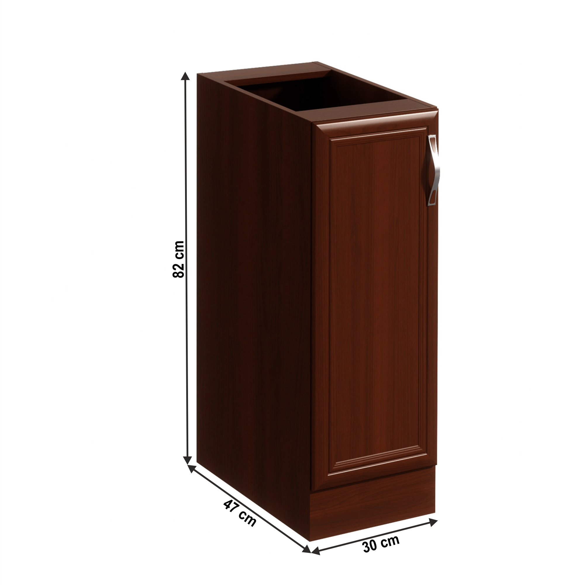 Spodní skříňka D30 s dvířky, levá ke kuchyni SICILIA Provedení: DTD laminovaná/MDF lišty Barva: ořech Milano Rozměry (ŠxHxV): 30x47x82 cm Tloušťka materiálu: 15 mm Spodní skříňky jsou dodávány bez pracovní desky. Můžete si objednat pracovní desku royal beigemarble k provedení ořech Milano - tloušťka 28mm za 1.590 Kč/bm a nebo pracovní desku dub Lancelot k provedení sosna andersen - tloušťka 38 mm za 1.690 Kč/bm.