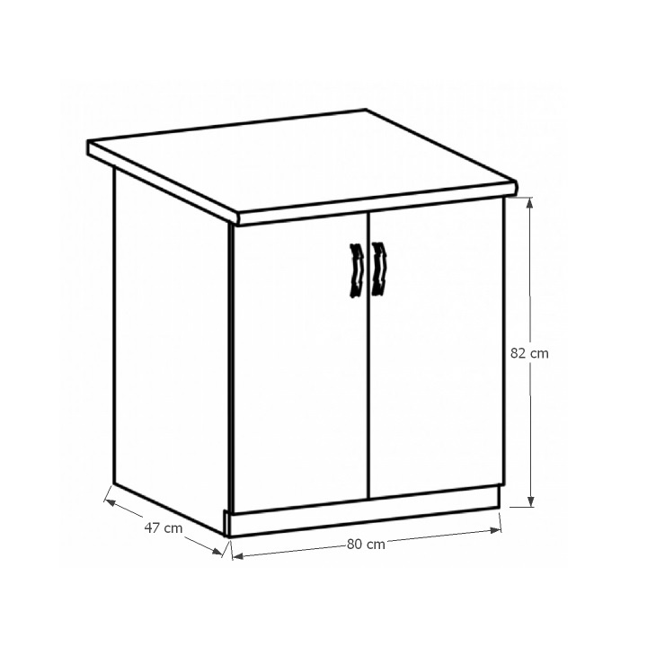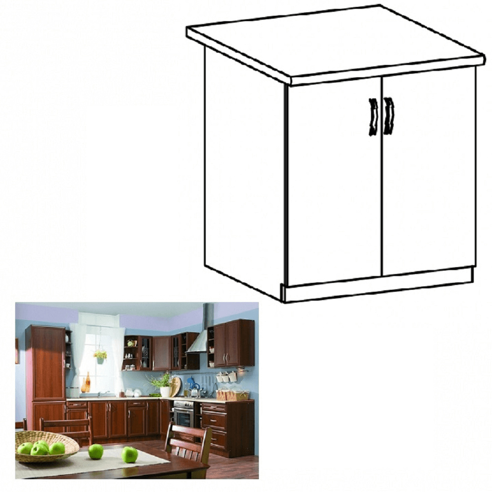 Spodní skříňka D80 s dvířky ke kuchyni SICILIA Provedení: DTD laminovaná/MDF lišty Barva: ořech Milano Rozměry (ŠxHxV): 80x47x82 cm Tloušťka materiálu: 15 mm Spodní skříňky jsou dodávány bez pracovní desky. Můžete si objednat pracovní desku royal beigemarble k provedení ořech Milano - tloušťka 28mm za 1.790 Kč/bm a nebo pracovní desku dub Lancelot k provedení sosna andersen - tloušťka 38 mm za 1.890 Kč/bm.
