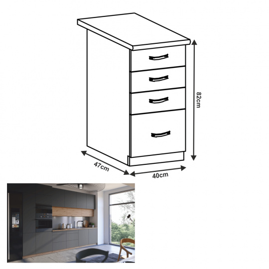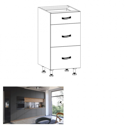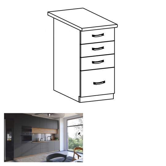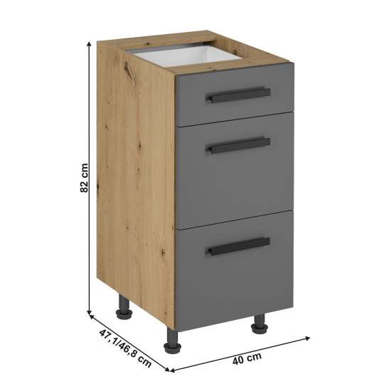 Spodní skříňka, dub artisan/šedý mat, s úchytkami, LANGEN D40S3 U