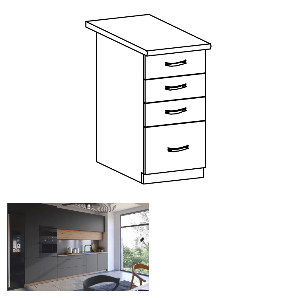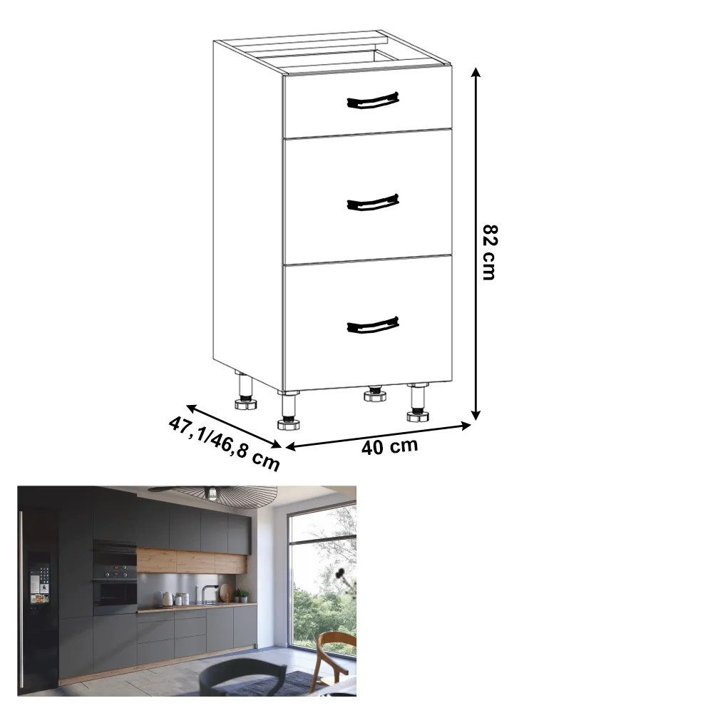 Spodní skříňka, dub artisan/šedý mat, s úchytkami, LANGEN D40S3 U