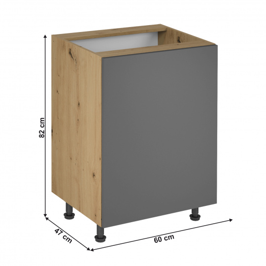 Spodní skříňka, dub artisan / šedý mat, univerzálni, LANGEN D60