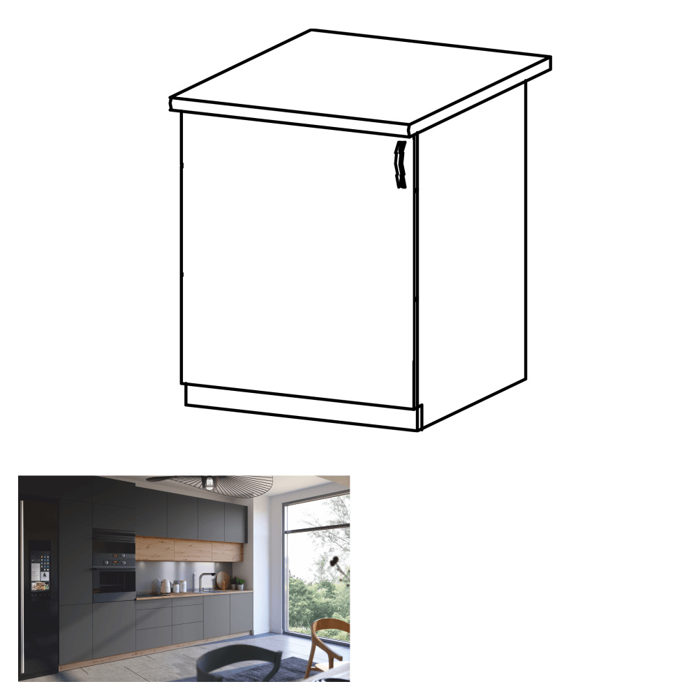 Materiál: DTD laminovaná Barva: dub artisan / šedý mat Barva vnitřní strany: bílá Rozměry (ŠxHxV): 60x47x82 cm Tloušťka materiálu dvířka (dub artisan): 1,5 cm Tloušťka materiálu dvířka (šedá MDF): 1,8 cm S policí Univerzální provedení Možnost volby otevírání PUSH OPEN Možnost volby otevírání úchytkami Bez pracovní desky Bez spodní lišty Dodáváno v demontu Cena sektorových skříněk je uváděna bez pracovní desky a spodní lišty. Cena za pracovní desku dub artisan je 1.890 Kč / bm - tloušťka 38 mm, cena za pracovní desku černý vulkán je 2.290 Kč / bm - tloušťka 38 mm. Možnost dokoupení spodní lišty dub artisan v rozměru 1 m za cenu 280 Kč nebo v rozměru 2 m za cenu 560 Kč a ukončení na sokl o hloubce 47 cm nebo 58 cm za 140 Kč. Ke každé dolní skříňce je nutné doobjednat 2 ks úchytů na sokl cena 40 Kč / 2 ks.. U skříněk D60S3 a D40S3 je třeba si vybrat skříňku s úchytkou nebo systémem Push Open.