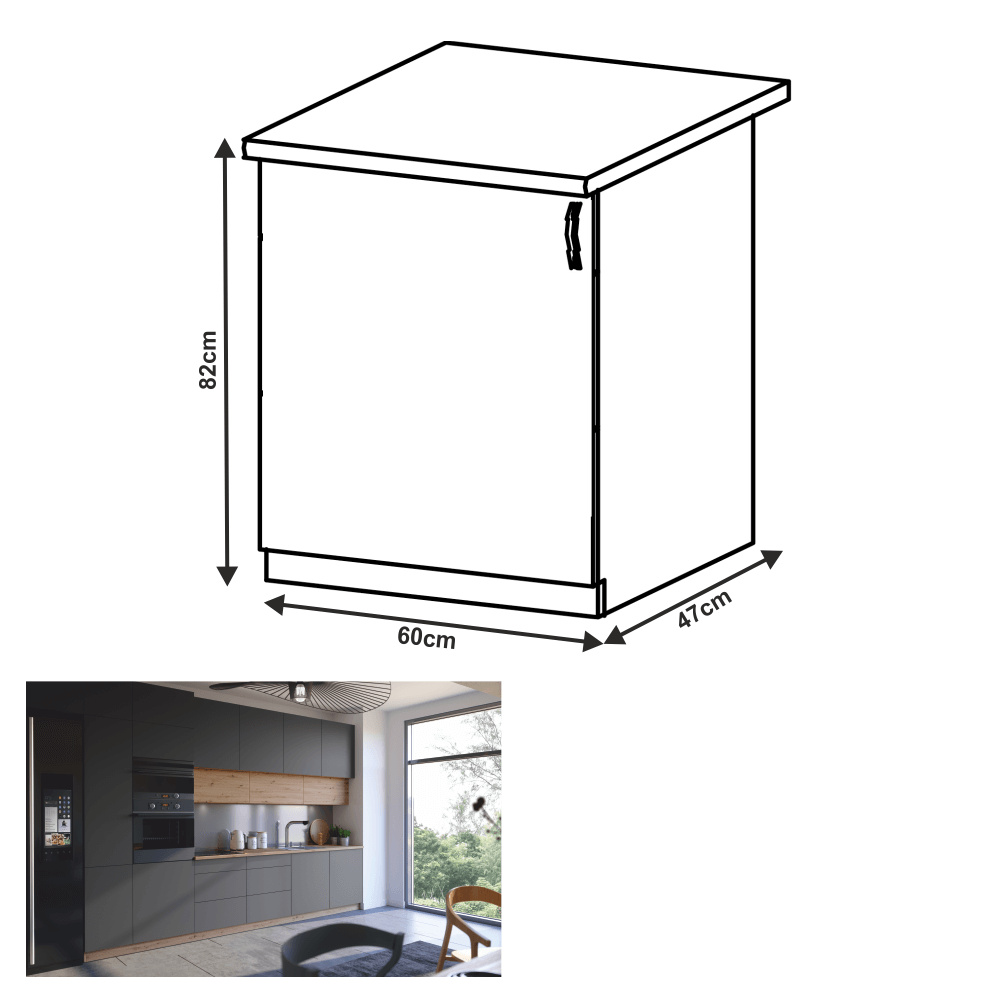 Spodní skříňka, dub artisan / šedý mat, univerzálni, LANGEN D60